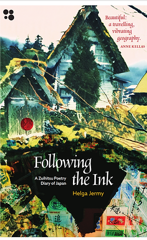 In Following the Ink Helga Jermy identifies the reason she is writing, the reason why she travels; she embraces Japan and its islands of paradox, tradition, consumerism and globalisation. With her daughter she visits a country born on a rim of geological insecurity, where even “the dust has manners” and where wildness is “cultivated,” sharing tourist destinations, remembering former visits with her drummer husband’s band, on a musical cultural exchange. In an assemblage of prose, haiku and other forms, Helga creates a journal in homage to travel, culture, companionship. This is her zuihitsu, the disordered ordered, with joy, in language, in wonder, play, alliteration and humour, all stitched together by the season—autumn— and its colours, by delicious gyoza, koi and carp. Helga has an eye for every detail. Travel ends, where it mostly does, back home—in reality’s travails, a world in conflict, the familiar birds. But each rereading of Following the Ink will return us to the charged realms the book carries us, “this journey we’re on together,” within and without. Helga Jermy identifies the reason she is writing, the reason why she travels; she embraces Japan and its islands of paradox, tradition, consumerism and globalisation. With her daughter she visits a country born on a rim of geological insecurity, where even “the dust has manners” and where wildness is “cultivated,” sharing tourist destinations, remembering former visits with her drummer husband’s band, on a musical cultural exchange. In an assemblage of prose, haiku and other forms, Helga creates a journal in homage to travel, culture, companionship. This is her zuihitsu, the disordered ordered, with joy, in language, in wonder, play, alliteration and humour, all stitched together by the season—autumn— and its colours, by delicious gyoza, koi and carp. Helga has an eye for every detail. Travel ends, where it mostly does, back home—in reality’s travails, a world in conflict, the familiar birds. But each rereading of Following the Ink will return us to the charged realms the book carries us, “this journey we’re on together,” within and without.